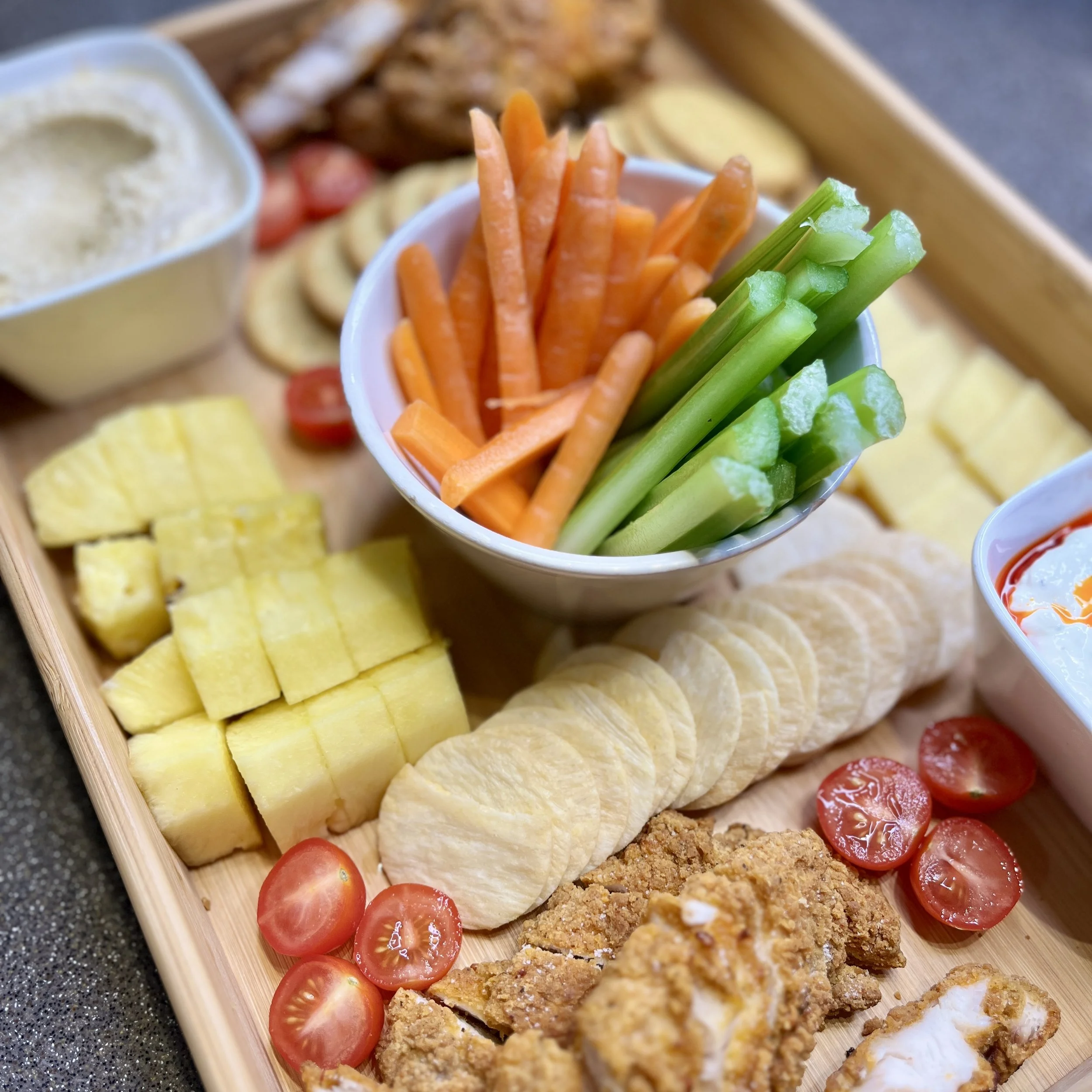 Once chicken has cooked, slice and assemble the board with all ingredients in your own artistic fashion